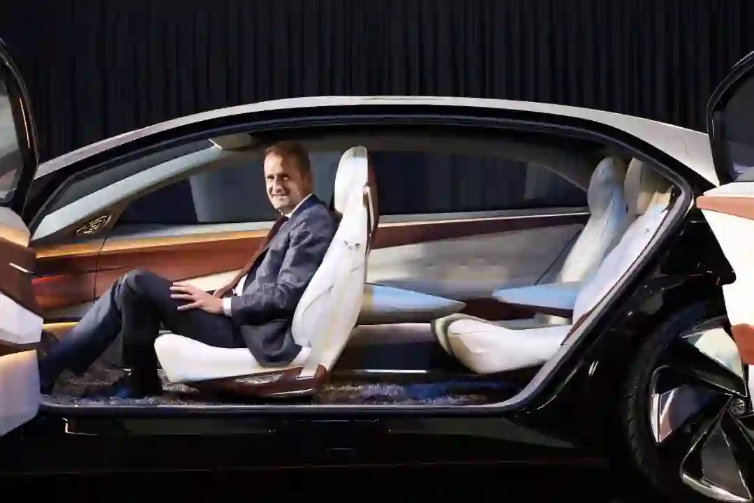 在德国中部夏季一个炎热的下午,全球最大汽车制造商的新任首席执行官坐进了一张白色皮革座椅,将鞋伸进了脚下厚厚的蓬松地毯,然后露出了微笑。于4月接任大众首席执行官一职的赫伯特·迪斯将自己高大的身影塞进了一大块酷似轿车形状的樱桃红金属壳中。不过,这辆车没有方向盘、踏板、离合器或任何人们通常能够在汽车中找到的部件。这个光鲜亮丽的奇妙装置是大众的概念车,名为I.D. Vizzion,在3月的日内瓦汽车展上首次与世人见面。