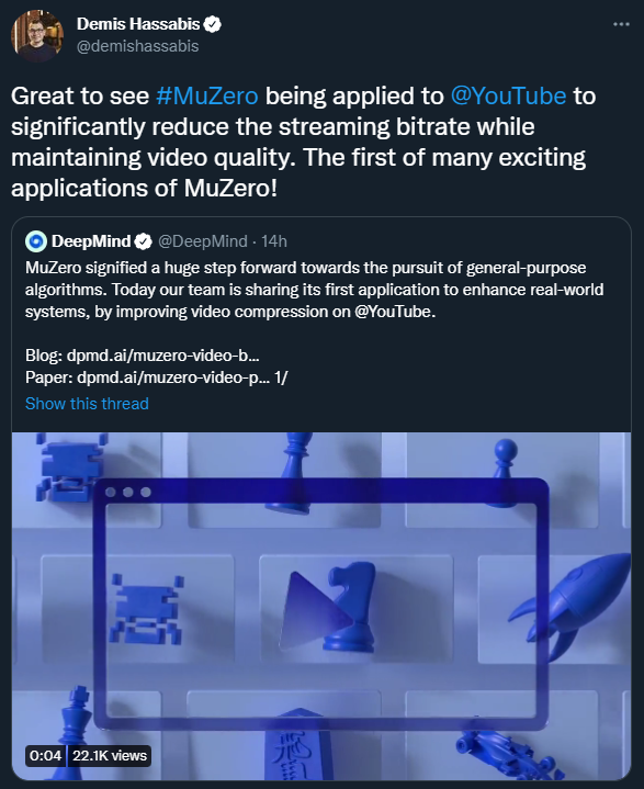 除了视频压缩,这项研究的意义还在于他们迈出了将 MuZero 应用于现实世界的第一步,证明了强化学习智能体可以用于解决现实世界的问题。DeepMind 表示,通过创建具有一系列新能力的智能体来改进跨领域的产品,他们可以帮助各种计算机系统变得更快、更自动化。公司的长期愿景是开发一个单一算法,用于优化数以千计的跨越各种领域的现实世界系统。