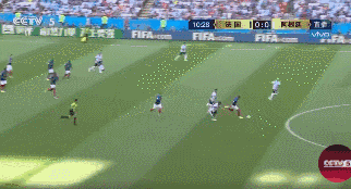 姆巴佩在对阿根廷比赛中的长途奔袭。来源:CCTV 5