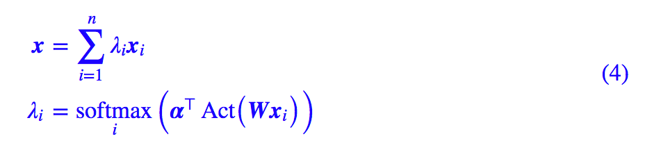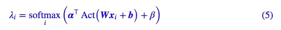 这里的 v,W 都为可训练参数。而 Act 为激活函数,一般会取 tanh,也可以考虑 swish 函数。注意用 swish 时,最好把偏置项也加上去,变为: