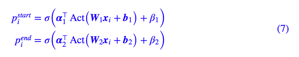这时候我们得到了一个混合了问题、材料信息的特征序列,直接对这个序列进行处理即可,所以后面接了几层卷积进行编码处理,然后直接对序列进行标注,而不需要再对问题进行交互了。
