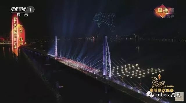 这就是珠海分会场的“三无”系列,三个领域内的顶尖科技公司共同完成了一场秀,同时也用科技元素衬托了港珠澳大桥开通的气氛。