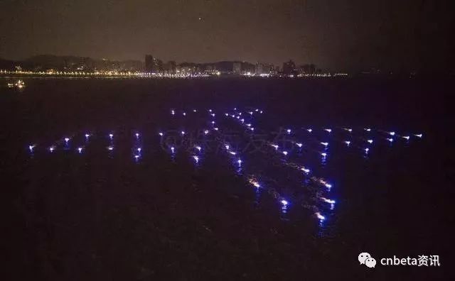 无人艇:由81艘无人艇组成的阵列从海底穿过港珠澳大桥。海底无人机的控制复杂程度比空中还要复杂一点,要实施根据海浪的状况来调整姿态以避免出现队列不齐的现象,控制方面还要保证信号传输的稳定。