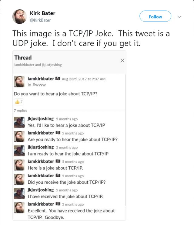 过瘾不,没过瘾再来一个关于UDP和网络的笑话