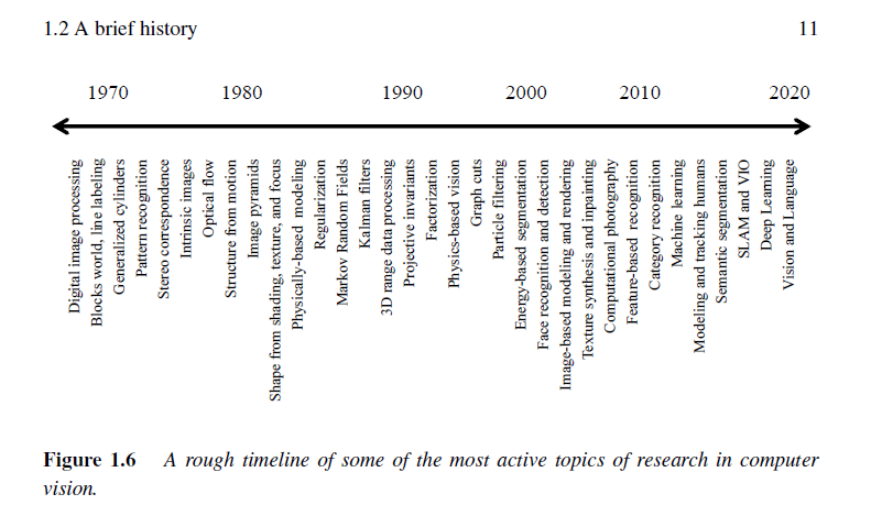 从那时起,华盛顿大学和斯坦福大学就一直使用类似的课程大纲和项目导向的课程结构来进行常规计算机视觉课程的教学(在斯坦福大学,在2003年这门课程由我和David Fleet共同讲授)。类似的课程大纲也被其他很多大学所采用,并被纳入计算摄影学相关的更专业的课程。(有关如何在课程中使用本书的建议,请参见1.4节的表1.1。)