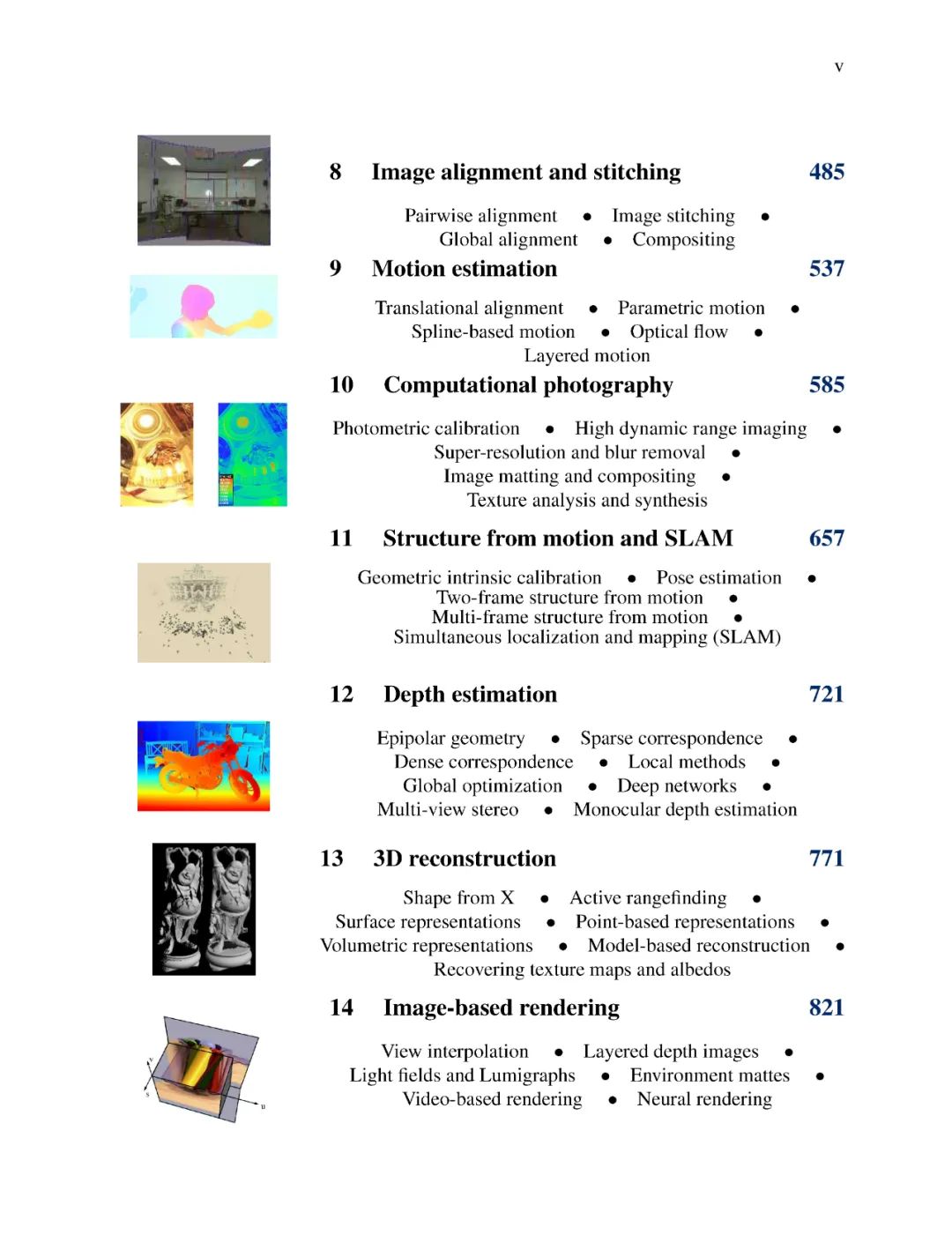 由于端到端深度学习系统不再需要开发构建模块,如特征检测、匹配和分割,因此识别章节已经在书的早些时候移到了第6章。许多选修视觉课程的学生主要对视觉识别感兴趣,因此在课程的早期呈现这些资料,可以使学生更容易以这些主题为期末专题的基础。