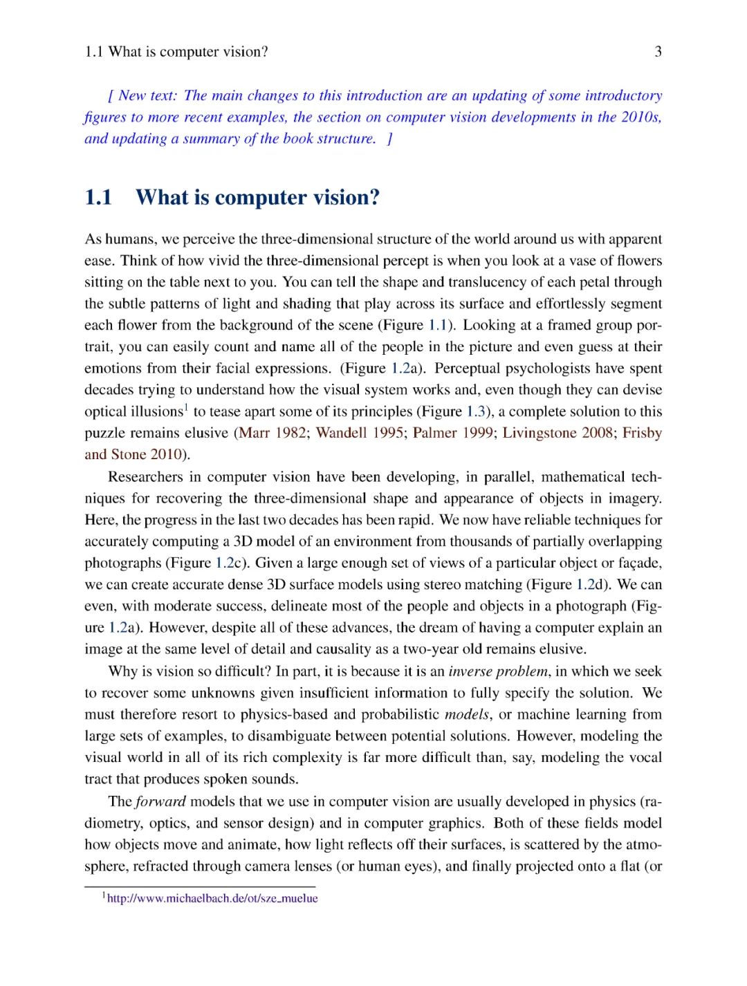 深度神经网络现在在许多视觉算法中扮演着重要的角色,这本书的新版本在早期就将其作为基础技术介绍,并在后续章节中广泛使用。
