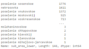 # make everything lower case.df['sub_area_lower'] = df['sub_area'].str.lower()df['sub_area_lower'].value_counts(dropna=False)