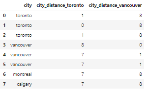 msk = df_city_ex['city_distance_toronto'] <= 2df_city_ex.loc[msk, 'city'] = 'toronto'msk = df_city_ex['city_distance_vancouver'] <= 2df_city_ex.loc[msk, 'city'] = 'vancouver'df_city_ex