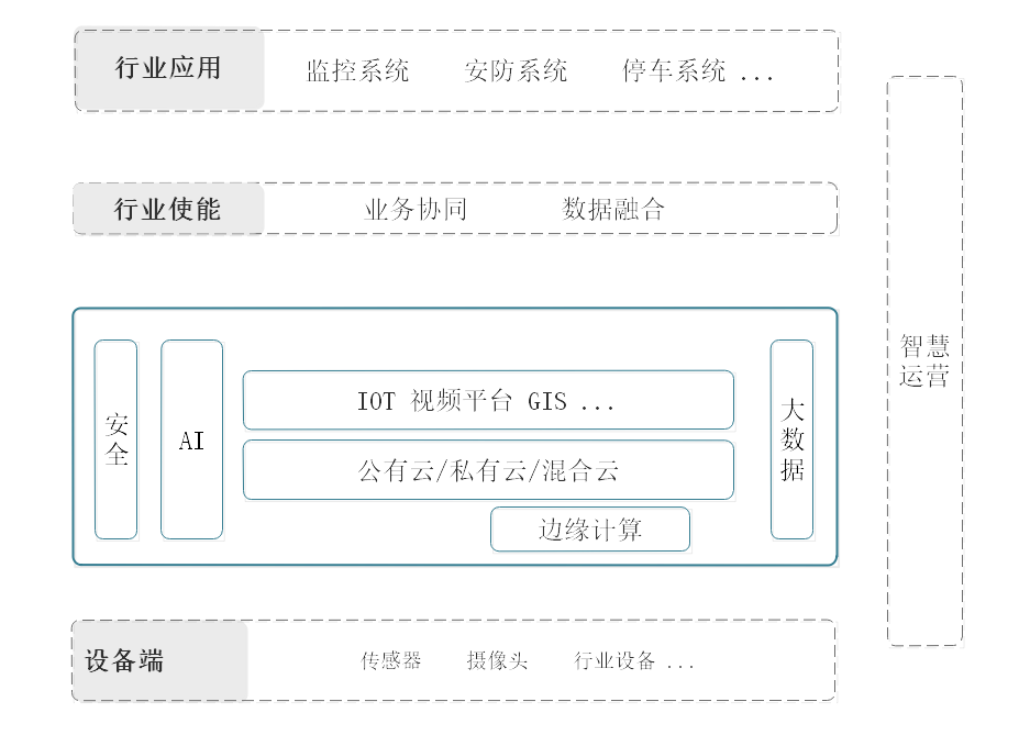 设备端:由设备提供商针对智慧解决方案提供设备,设备可以互联互通。