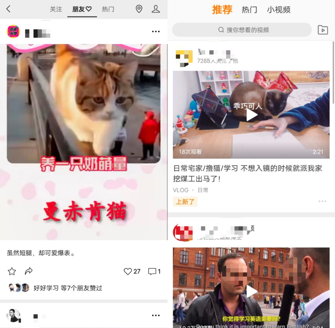 “朋友推荐”则是当好友点赞相关视频后,系统会将这部分视频推荐给自己观看,其功能类似于微信的“看一看”。