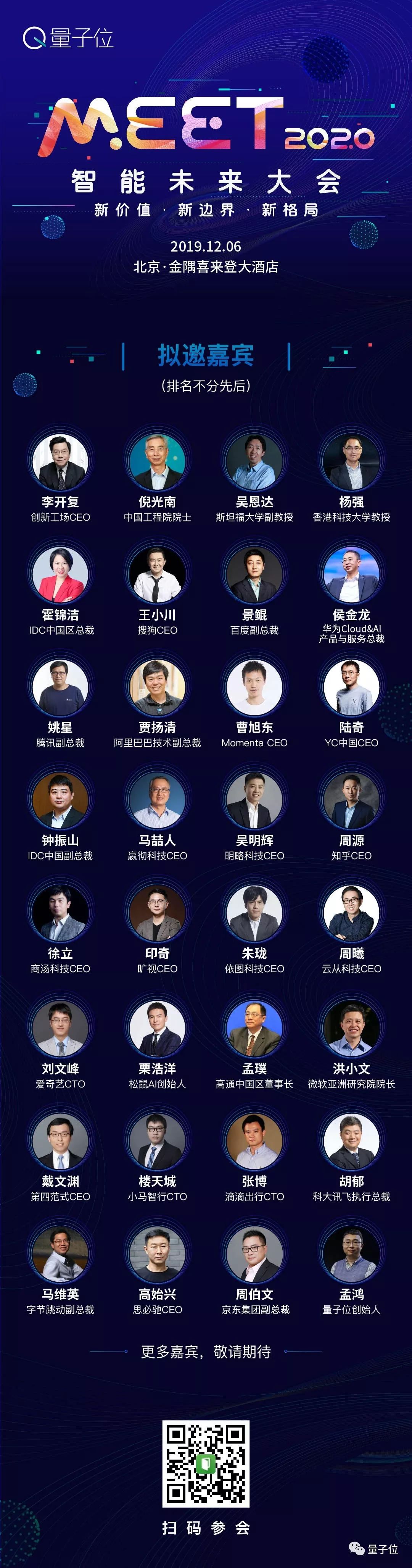 量子位MEET 2020智能未来大会启幕,将携手优秀AI企业、杰出科研人员呈现一场高质量AI行业峰会!现在扫码报名,可享早鸟优惠!