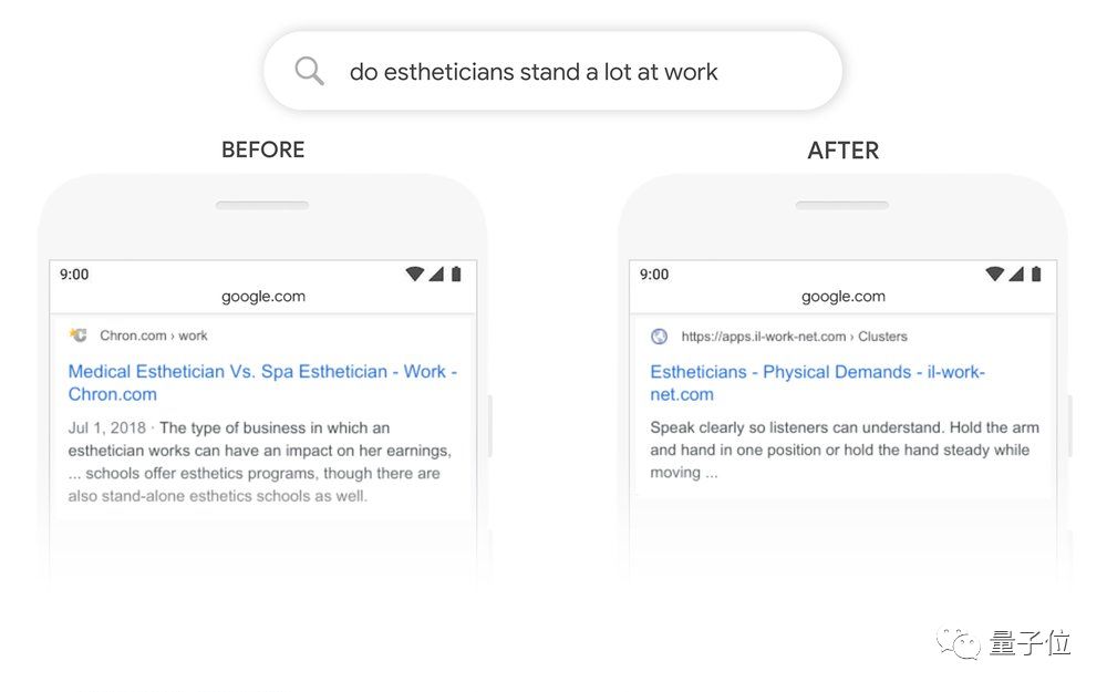 而BERT了解到“站立”(stand)是和“美容师”(estheticians)工作性质有关的词,从而返回了正确的结果。