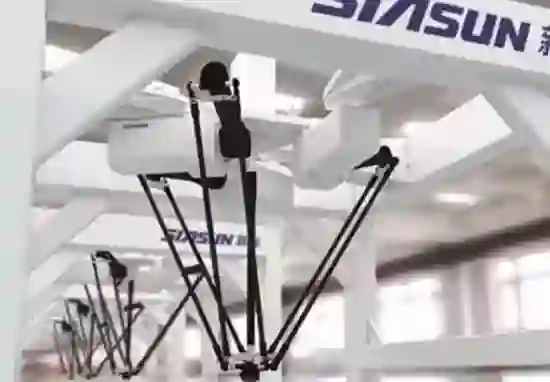 概要:并联机器人这类设备主要用于精密紧凑的应用场合,竞争点集中在速度、重复定位精度和动态性能等方面,这方面我们国产领军企业新松并联机器人也做的不错。