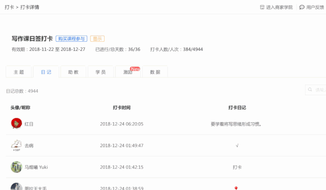 通过小鹅通平台打卡激励的方式,学员们在潜移默化中建立起听课习惯,课程结束时,有300+学员轻松持续学习36天,成效卓著。
