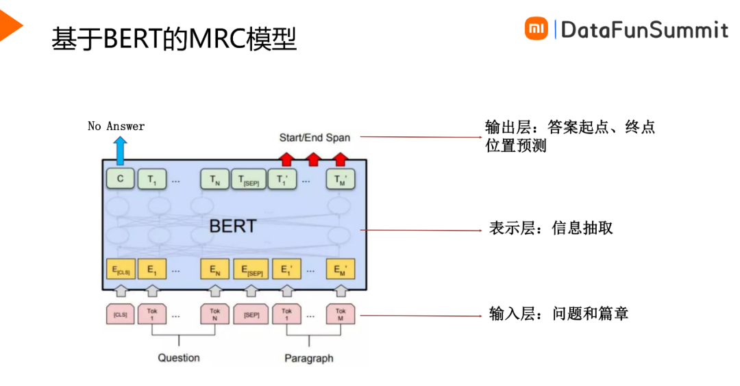 阅读理解模型使用的是基于span的阅读理解模型,由于阅读理解模型的可控性不够好,准确率难以适应业务需求,所以我们从业务出发限制了只在特定类型的query,并且图谱问答、检索问答召回不了的时候才考虑使用阅读理解技术召回。例如询问鲁迅姓什么,那么我们就以鲁迅的百科简介作为passage,从中提取答案片段。这样,这个模块的准确率才更能适应业务的需求。