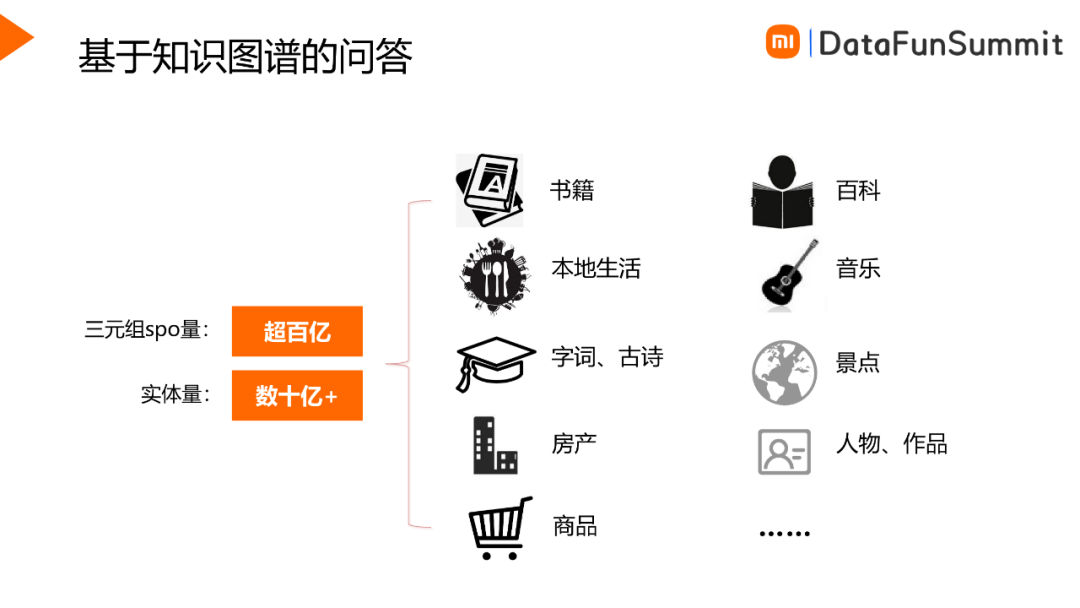 知识图谱是图谱问答的数据基础。小米AI实验室构建了超大规模的知识图谱,其中包含的领域很多,例如书籍、本地生活、古诗词、房产、商品、音乐、人物作品等。基于已构建的超大规模知识图谱,我们开展了以下几方面的研究并应用于线上: