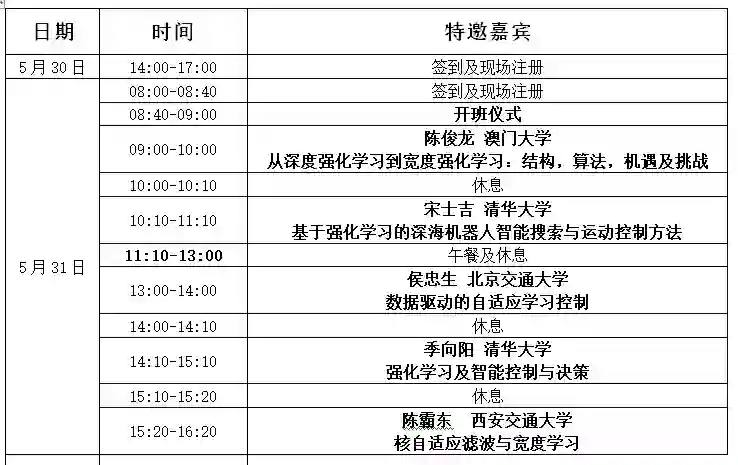 中国自动化学会将围绕“深度与宽度强化学习”这一主题,于2018年05月31日-06月01日在中科院自动化所举办第五期“ASSIA智能自动化学科前沿讲习班”。此次讲习班由中国自动化学会副理事长、澳门大学讲座教授陈俊龙与清华大学教授宋士吉共同担任学术主任,邀请业界多位知名专家作主题报告分享。