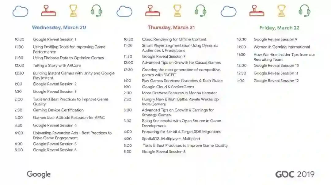 第三天请关注首届 Google 云开发者日。我们让一线游戏开发者与 Google 工程师们齐聚一堂,深入展示与探讨云端游戏的最新技术与趋势。