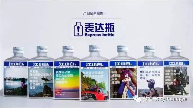 第一款产品:表达瓶。江小白出了以后,全行业对小瓶酒市场突然非常重视,我们也是专注运营小瓶酒定位的小切口公司。