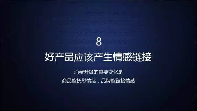 消费升级非常重要的一个方面,是品质比原来更高了,另一方面最明显的特征是消费者开始从原来的物质彰显,变成情感彰显,原本商品的售价把消费者分成三六九等,今天发现很多消费者对品牌给予的精神分类非常地看重。