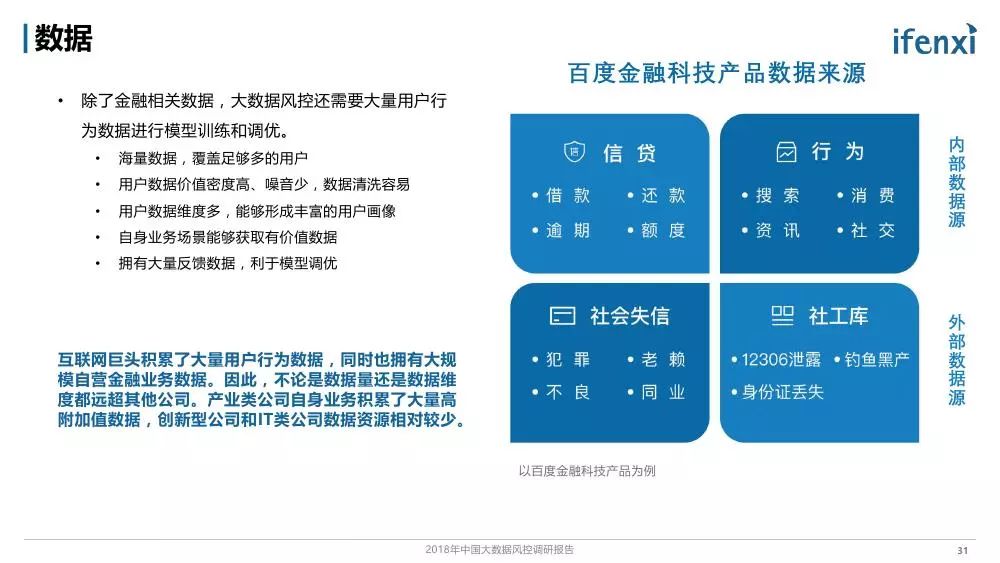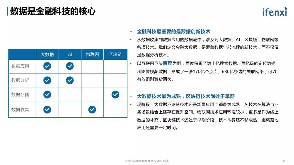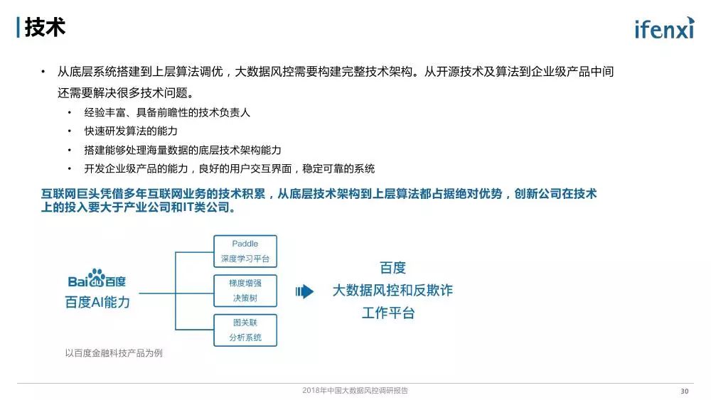 随着金融科技的深入发展和多方面应用,以大数据等科技手段提收增效成为金融行业核心诉求。3月12日,百度金融携手爱分析联合发布了《2018年中国大数据风控调研报告》,对能够有效降低金融风险管理成本的大数据风控技术和市场进行了研究分析。