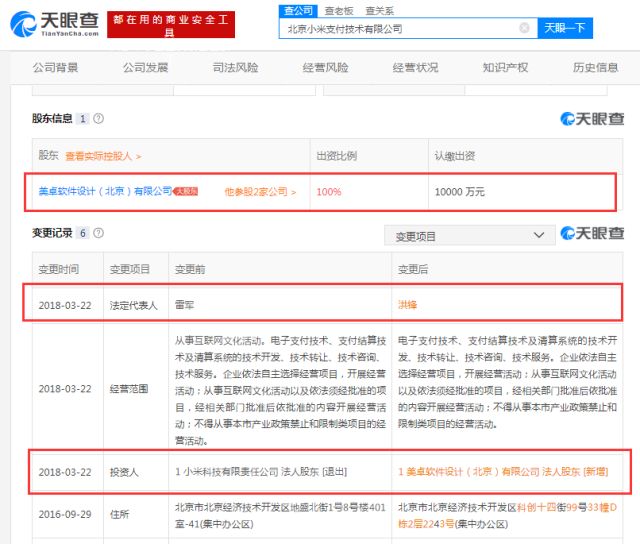 5、小米支付更换法人代表 或为小米IPO做准备