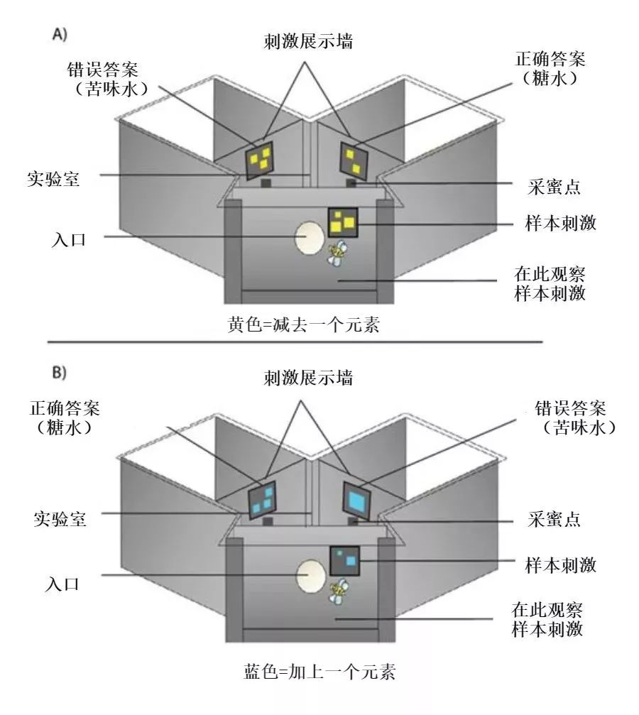 除了这两个过程之外,蜜蜂还必须在工作记忆中进行算术运算——加上或者减去的数字“一”的行为,在视觉上是不存在的。当然,加一或减“一”的想法是蜜蜂在训练过程中必须解决的抽象概念。