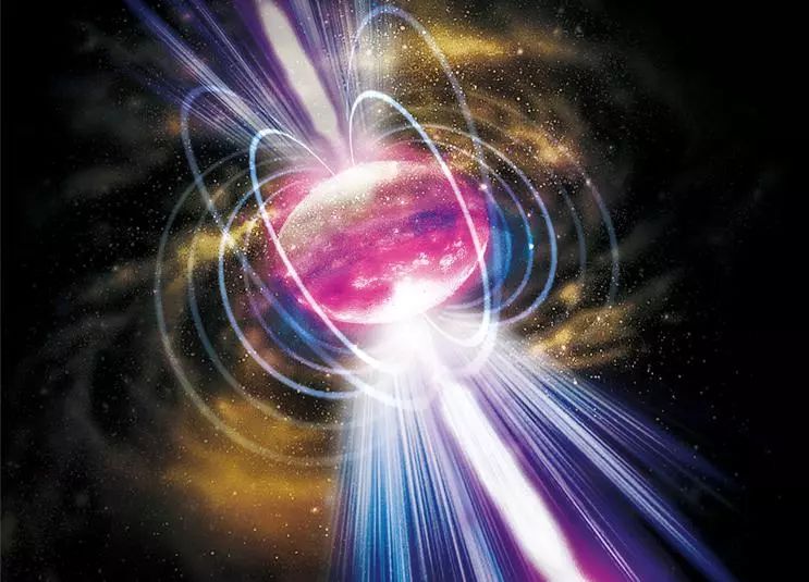 图1:遥远宇宙中神秘磁星的假想图(图像创作:王国燕、何聪)