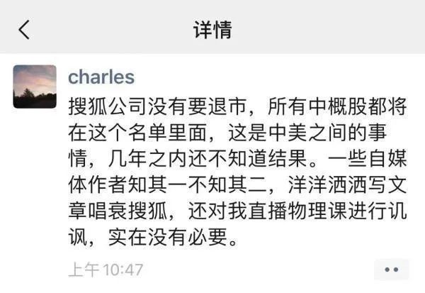 搜狐创始人、董事局主席兼首席执行官张朝阳发布朋友圈称,搜狐公司没有要退市,“一些自媒体作者知其一不知其二,洋洋洒洒写文章唱衰搜狐,还对我直播物理课进行讥讽,实在没有必要。”搜狐此前发布公告称,公司被美国证券交易委员会(SEC)列入基于《外国公司问责法案》(HFCAA)的临时认定名单,不打算对SEC的临时认定提出异议。(澎湃)