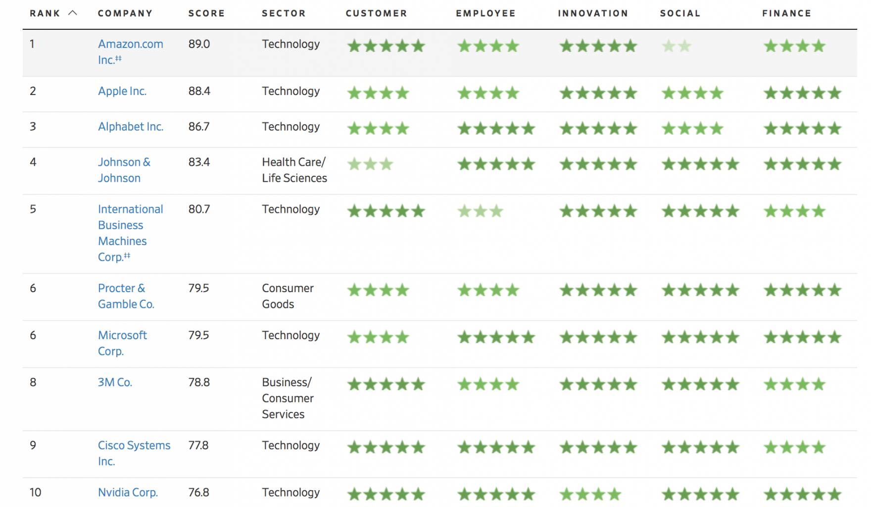 德鲁克研究院的最新排名显示,在250家管理最好的美国公司中,苹果位列第二。苹果88.4的得分仅比亚马逊(89)低0.6分,比谷歌母公司Alphabet(86.7)高出1.7分。进入前十位的其他科技公司包括IBM(第5位)、微软(第6位)、思科(第9位)和英伟达(第10位)。