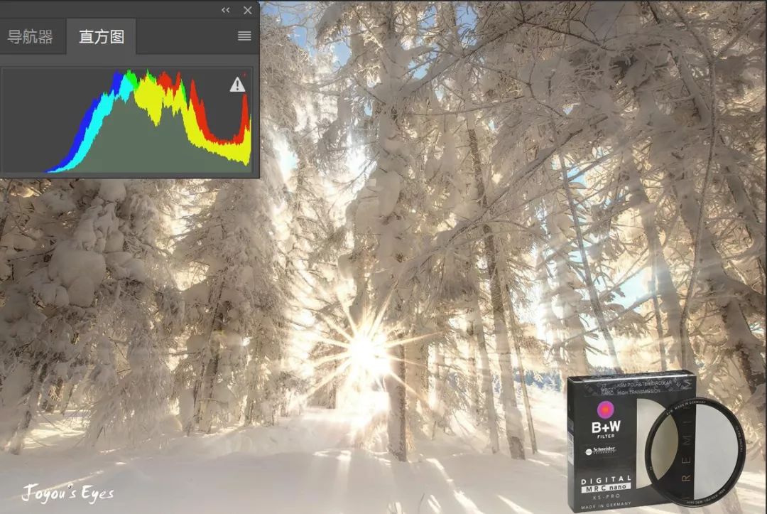 其实可以通过CPL滤镜消掉一些雪的强反光,减少明暗反差,得到一个很均衡的曝光照片。对于上面的场景,雪的反光也会相当严重,这时候我们需要使用CPL滤镜,消除雪面的强反光。CPL滤镜可能是雪景摄影最常用的滤镜,最常用的场景也是太阳升起之后的强反光时刻。