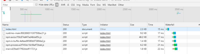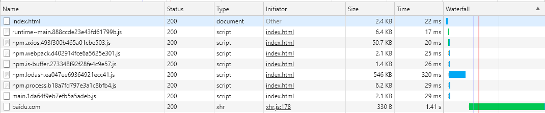安装 http-server 或使用 vscode 的插件 Live Server 将代码放入一个本地服务器中,打开浏览器的调试窗口进入到 Network 面板: