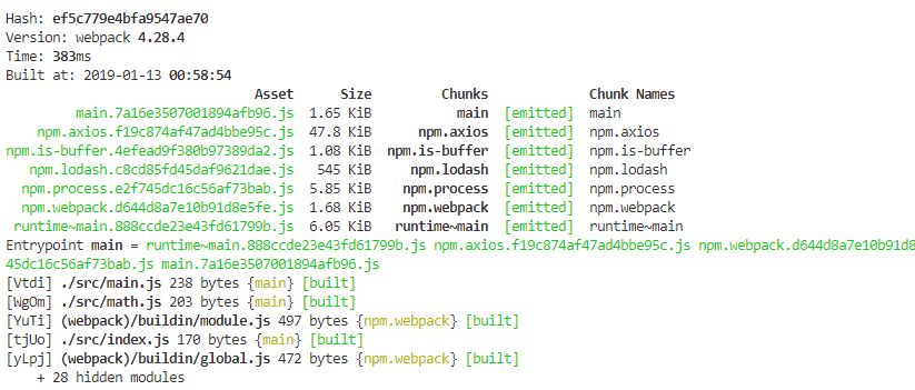 虽然说这样将第三方模块单独打包出去能够减小入口文件的大小,但这样仍然是个不小的文件;这个小的测试项目中我们使用到了 axios 和 lodash 这两个第三方模块,因此我们希望的应该是将这两个模块单独分离出来两个文件,而不是全部放到一个 vendors 中去,那么我们继续配置 webpack.config.js: