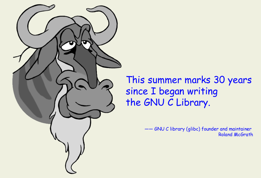 This summer marks 30 years since I began writing the GNU C Library. (That's two thirds of my lifespan so far.) It's long enough.
