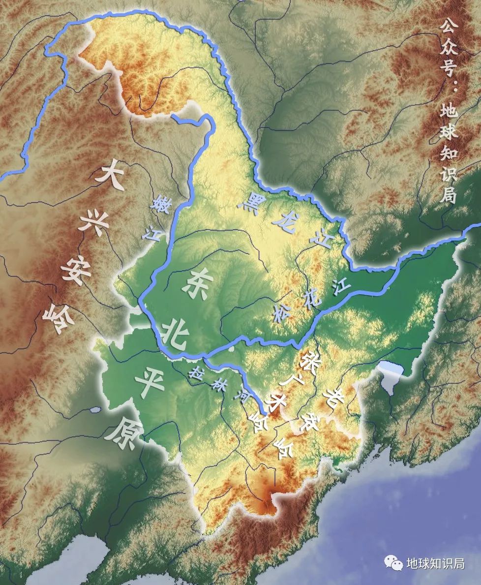 也就是说,东北三省和内蒙古东部之间的分割线没有山地,全部都是水系,甚至是水系之间夹角中人为划分的线。