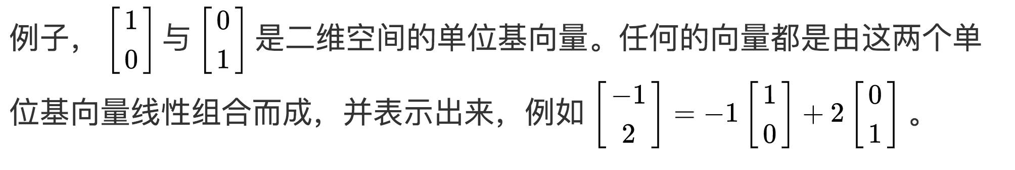 这其中的区别就是基向量不一样了,而线性组合的系数 -1 与 2 保持固定不变。