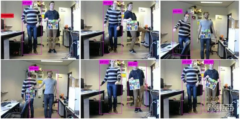 等右边的人将贴纸交给左边的人后,AI瞬间就检测不出左边的人。