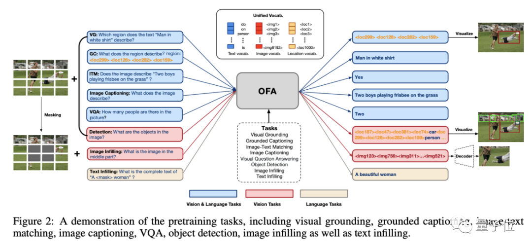 不引入新增结构,单一模型即可同时处理图像描述、视觉定位、文生图、视觉蕴含、文档摘要等10余项单模态和跨模态任务,效果都很不错;升级后更是可以处理超过包括语音和动作在内的30多种跨模态任务。