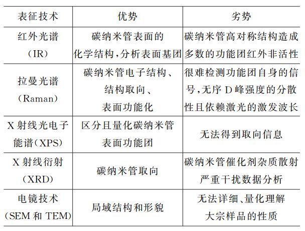 表1 与同步辐射表征技术比较,常规表征技术在碳纳米管结构与性能表征中的特点与不足