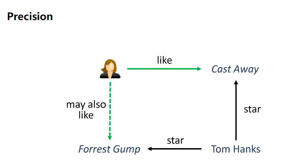 第1个提高推荐系统的精度 ( Precision ),更准确的发现item之间的相似性,如下图2部电影,能通过Tom Hanks做个连接。