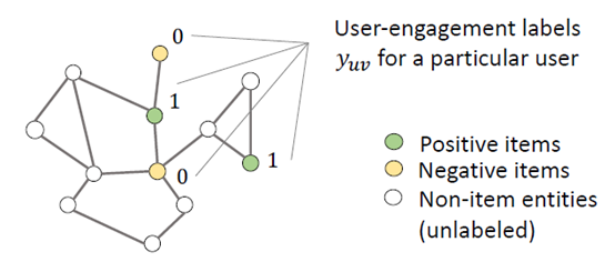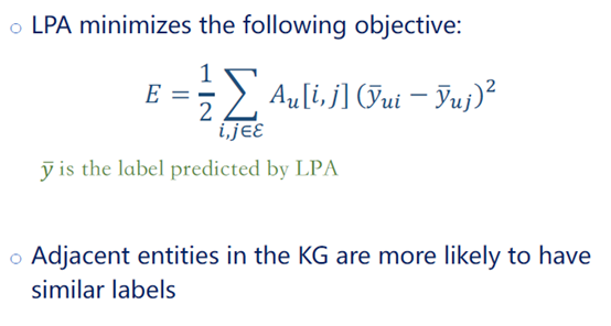 是用户对某个物品的评分,这个评分是一个已知值,所以可以在KG中对这些点打一个标签。用户看过某部电影,对应的标签是1,没看过的电影对应的标签是0,对non-item实体没有标签。