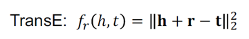 如上公式为TransE算法模型,对KG中的每一个tuple(h,r,t),学习到的entity embedding,relation embedding,使h+r约等于t,这的r相当于翻译作用,把h翻译成t,f函数对每个tuple的真实分值越小越好。