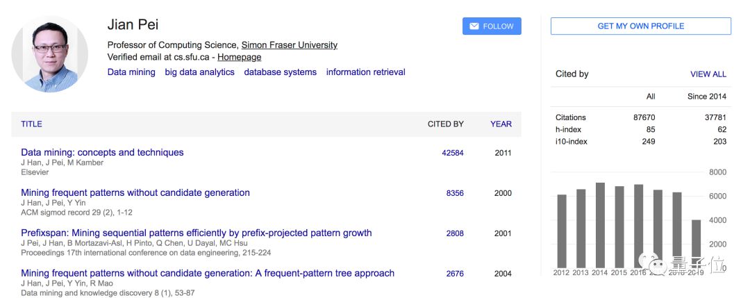 在学术方面,裴健教授是数据挖掘、数据库系统和信息检索方面被引用次数最多的作者之一。