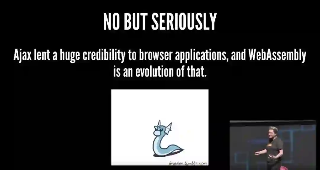 但是我的意思是说 Ajax 真的高度可信并且使客户端层面应用成为可能,所以说,Ajax 是一个变革,而 WebAssembly 将是下一步的一个变革。