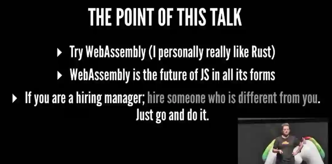 这次谈话的重点是试着拥抱 WebAssembly ,我个人特别喜欢 Rust。