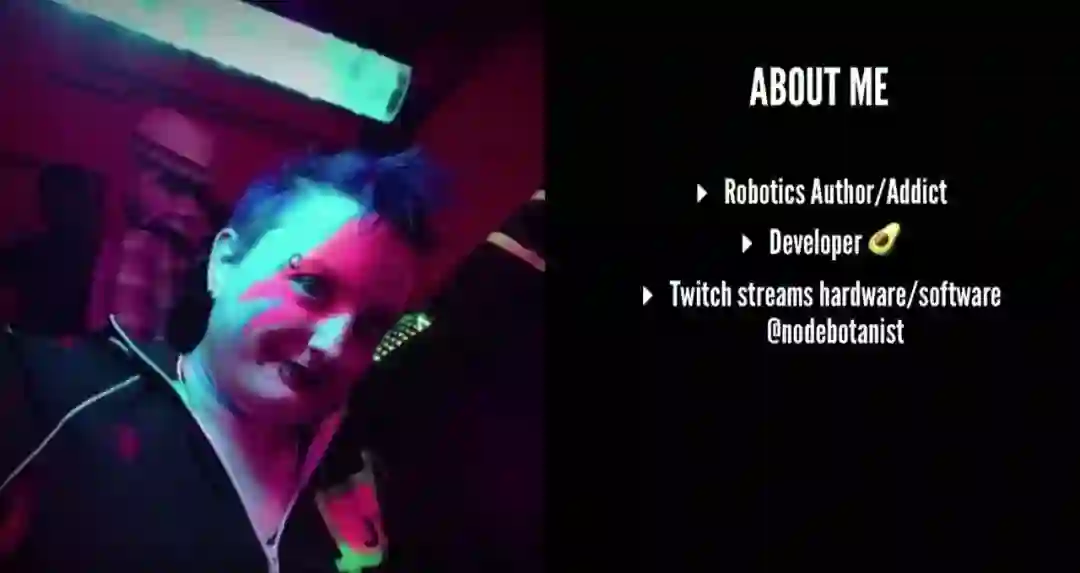 我已经写了两本使用 JS 给机器人编程的书。我周末也会在 twitch 上直播一些硬件和软件相关的东西。