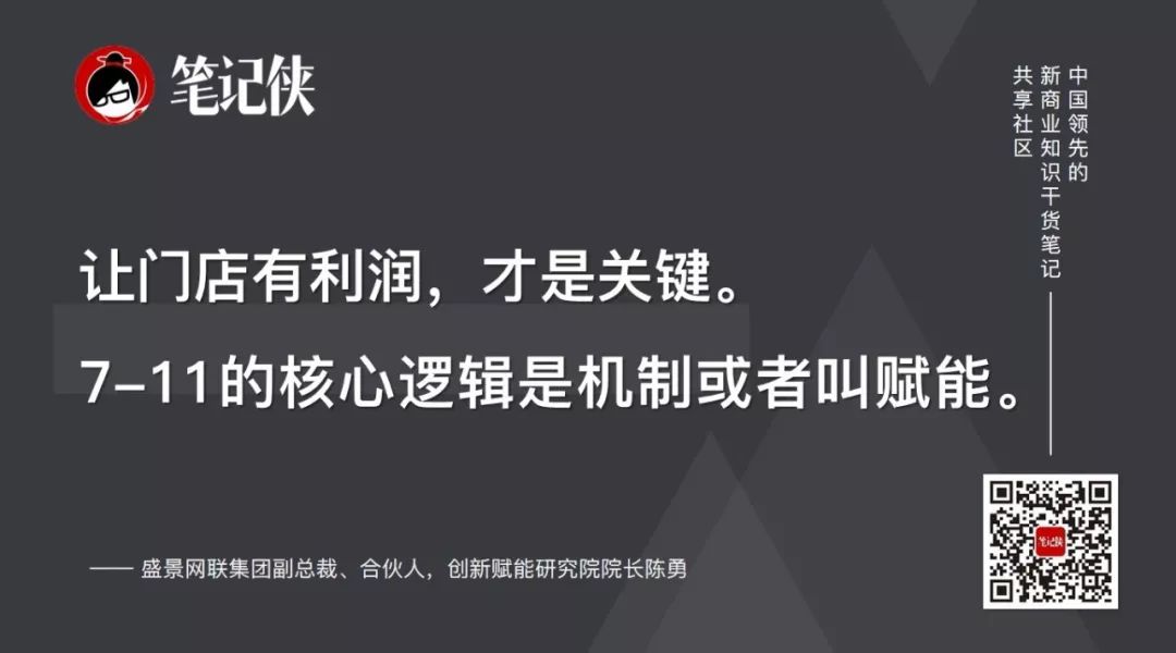 让门店有利润,才是关键。7-11的核心逻辑是机制或者叫赋能。它是一个真正帮人赚钱的公司。