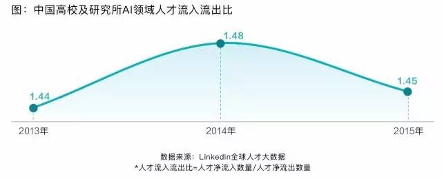 人才需求激增使科技公司把渐渐将目光瞄准各大高校 AI 领域的顶尖学术人才。然而,尽管越来越多的企业在挖掘 AI 人才方面不惜重金,领英大数据显示,中国高校及研究所在2013-2015年期间仍保持着人才净流入的状态。如果企业能加强并推动与高校、研究所间的人才培养和研发项目合作,将有助于人工智能领域的资源互补和人尽其才。