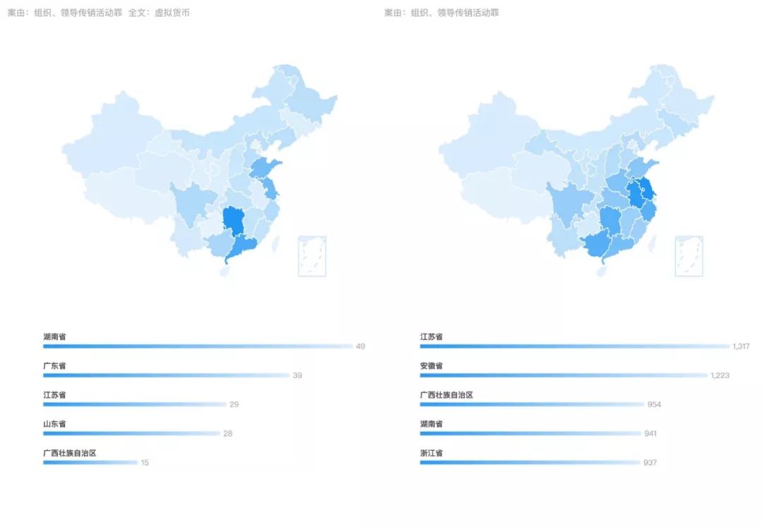 链法律师团队郭亚涛也有类似的梳理:“在地域分布上,涉案高发区域是两广地区、两湖地区、江浙地区。在这点上,跟传统的传销相似度很高。”